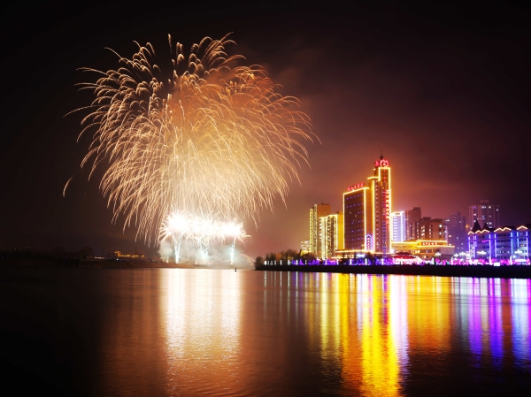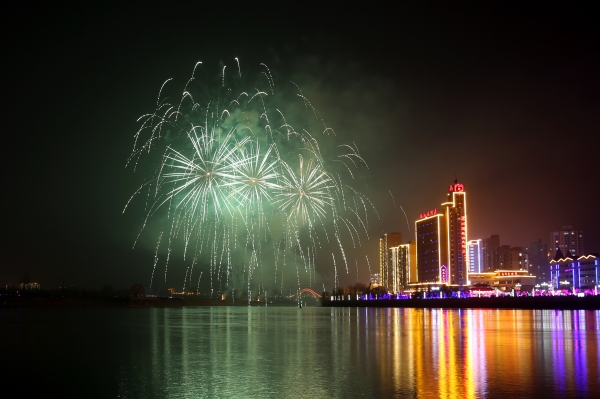 音乐焰火晚会以“蓝色黄河·阳光永靖”为主题,共分为“阳光永靖·喜气洋洋闹元宵,丝路古道·携手走进新时代,砥砺前行·三年决战奔小康,不忘初心·扬帆再启新征程”四个篇章,历时近30分钟。特制、环保的焰火产品与音乐解说完美结合,营造了欢乐、喜庆、文明、祥和的节庆气氛,燃放表演热情奔放、绚丽璀璨、气势磅礴、紧凑连贯,展现出一个魅力四射、进取腾飞的新永靖。 满天银菊溅花雨,擎天银柱耀苍穹。半个小时的燃放时间里,五光十色的焰火腾空而起争相绽放,时而像金菊怒放、牡丹盛开;时而像百鸟朝凤、彩蝶翩跹;时而像蛟龙出水、巨龙腾飞……一朵朵、一束束焰火在夜空中绽放出耀眼的光芒,似繁星点点,如星河飘落,与璀璨的夜色交相辉映,形成一幅火树银花不夜天的动人景象。焰火欢腾,芙蓉花开,绽放苍穹的烟花照亮永靖夜空,昭示着永靖更加美好的未来。大家情不自禁地欢呼着、雀跃着,纷纷拿起手机、相机将这美好的瞬间记录下来。 礼炮是升空的抒情诗,焰火是喷涌的写意画,礼炮是梦幻的交响曲。当晚,黄河两岸人头攒动,挤满了前来观看焰火的群众,整座县城成为了欢乐的海洋。焰火晚会为全县人民献上一场流光溢彩的视觉盛宴,把庆新春系列文化活动推向了高潮,也为欢乐喜庆的春节画上一个漫天华彩的完美句号。(记者:侯奇志 郭红)