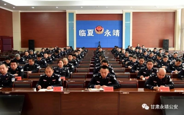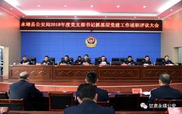 1月29日,永靖县公安局召开2018年度党支部书记抓基层党建工作述职评议大会,县委常委、政法委书记、公安局党委书记、局长侯春波主持会议并做讲话,县公安局党委副书记、政委杨建勇,党委班子全体成员,各党支部书记,派出所所长,全体党员民警参加会议。