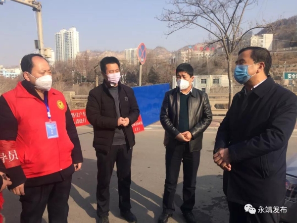 张自贤随机查看了川北社区独栋楼、北苑小区,川南社区部分小区,在川北社区独栋楼,他要求设置警戒带,预留一个出口,从严加强管控。在北苑小区、川南社区,详细查看人员登记、消毒液发放、人员值守等情况,他说县上统一为广大居民配发消毒液,各社区要广泛宣传,并及时发放到位,满足群众家庭防疫需求,也让群众感到暖心、安心、放心。每到一处,张自贤对值守人员表示问候,叮嘱值班人员做好自身防护,勉励大家再鼓干劲,当好疫情防控“守门员”。他要求,刘家峡镇和相关部门要全力做好值守人员取暖、用餐等后勤保障,各小区在设置检查卡口的同时也要保障消防通道畅通。