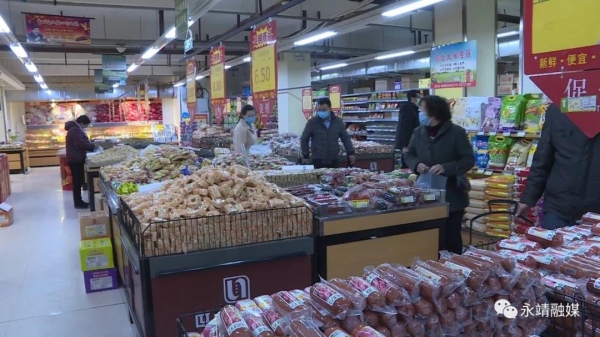 永靖县市场监管局干部 赵和梅:“自腊月28日起,对大型超市和经营门店开展执法检查,对详细掌握了解疫情防控措施的落实情况,蔬菜、米、面、油等食品的安全问题供应情况,确保食品供应充足,物价稳定。”(记者:褚宗仁 黄绍伟)