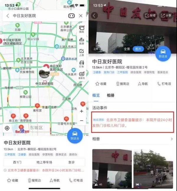据悉,用户点击“发热门诊地图”,即可查看附近所有提供发热门诊的医疗机构。或者直接搜索医疗机构名称,在地址详情页中也能看到卫生健康委官方提示,了解该医院是否设有发热门诊,帮助大家就近就医,避免交叉感染。