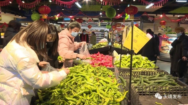 新型冠状病毒感染的肺炎疫情发生以来,我县广大市民响应政府号召,减少外出居家过年。近日,永靖县融媒体中心记者走访了县城世纪华联超市、工农商超市等部分大型商超,就米、面、油、肉类、水果蔬菜等生活必需品供应情况进行了实地探访。