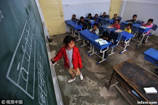 杨元忠说,教育发展滞后是制约临夏脱贫攻坚的短板,我们把发展教育作为“挖穷根”的治本之策。图为临夏的东乡县一小学在上课。(视觉中国/图)(本文首发于2019年3月7日《南方周末》)