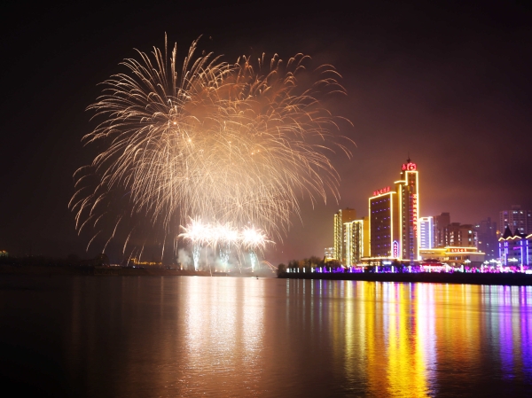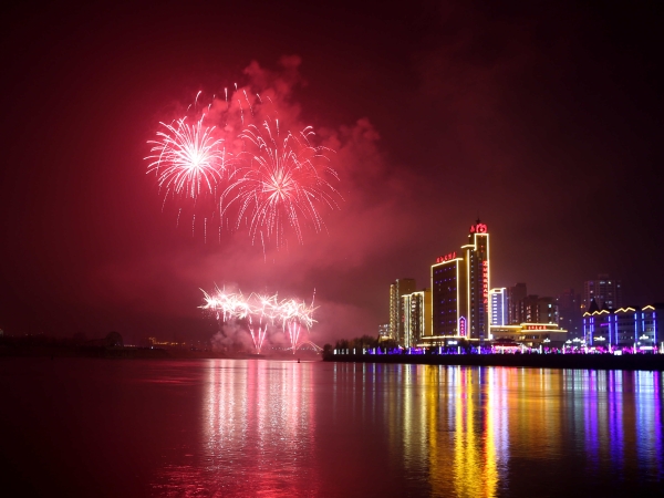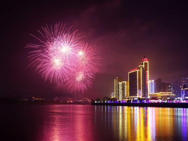 音乐焰火晚会以“蓝色黄河·阳光永靖”为主题,共分为“阳光永靖·喜气洋洋闹元宵,丝路古道·携手走进新时代,砥砺前行·三年决战奔小康,不忘初心·扬帆再启新征程”四个篇章,历时近30分钟。特制、环保的焰火产品与音乐解说完美结合,营造了欢乐、喜庆、文明、祥和的节庆气氛,燃放表演热情奔放、绚丽璀璨、气势磅礴、紧凑连贯,展现出一个魅力四射、进取腾飞的新永靖。 满天银菊溅花雨,擎天银柱耀苍穹。半个小时的燃放时间里,五光十色的焰火腾空而起争相绽放,时而像金菊怒放、牡丹盛开;时而像百鸟朝凤、彩蝶翩跹;时而像蛟龙出水、巨龙腾飞……一朵朵、一束束焰火在夜空中绽放出耀眼的光芒,似繁星点点,如星河飘落,与璀璨的夜色交相辉映,形成一幅火树银花不夜天的动人景象。焰火欢腾,芙蓉花开,绽放苍穹的烟花照亮永靖夜空,昭示着永靖更加美好的未来。大家情不自禁地欢呼着、雀跃着,纷纷拿起手机、相机将这美好的瞬间记录下来。 礼炮是升空的抒情诗,焰火是喷涌的写意画,礼炮是梦幻的交响曲。当晚,黄河两岸人头攒动,挤满了前来观看焰火的群众,整座县城成为了欢乐的海洋。焰火晚会为全县人民献上一场流光溢彩的视觉盛宴,把庆新春系列文化活动推向了高潮,也为欢乐喜庆的春节画上一个漫天华彩的完美句号。(记者:侯奇志 郭红)