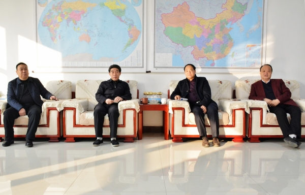 1月17日,县委书记尹宝山会见甘肃第二建设集团有限公司党委书记、董事长王春景一行,就旧城棚户区改造、城市建设等事宜进行亲切交谈。(记者:陈万吉)