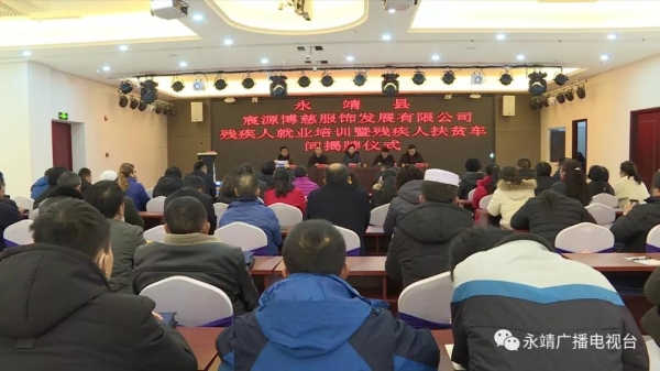 1月21日,永靖县首家残疾人扶贫车间——宸源博慈服饰发展有限公司揭牌运行。州残联党组书记、理事长陈鹏,副县长邓海波共同揭牌。