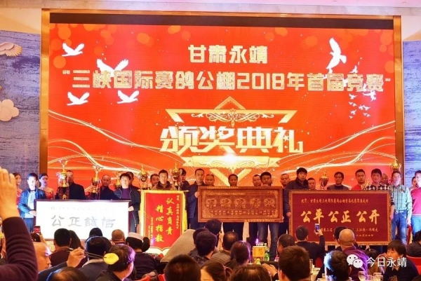 甘肃省赛鸽协会主席王焕忠,黄河三峡大景区管理委员会主任柳玉珍,副县长陈晶莹,黄河三峡大景区管理委员会副主任陈克义,三峡国际公棚董事长李世平等出席颁奖典礼并为获奖者颁奖。 在12日晚的颁奖仪式上,70名参赛者获得不同赛段奖项,总奖金额高达680万元。 13日举行了赛鸽展示及拍卖,共有500只赛鸽参与竞拍,从1000元起拍价开始,决赛冠军鸽4.5万元、亚军鸽2万元、季军鸽3.5万元、鸽王冠军7万元。特别是鸽王亚军特别抢手,价格一路飙升,最终以20万元的全场最高价被鸽友拍走。 据了解,此次参赛信鸽于11月27日8点26分在内蒙古乌海市开笼,空距500公里,在甘肃永靖三峡国际赛鸽公棚归巢。本着公平、公正、公开的原则,评选出180公里热身赛前十名、280公里预赛前十名、500公里决赛小团体前十名、500公里决赛大团体前十名、三关鸽王前十名、560公里加站赛前十名、500公里决赛前十名。 永靖县青山绿水,气候宜人,优质的空气和气候环境不仅是宜居宜游的首选,更为赛鸽的培育、生长提供了得天独厚的自然条件。2017年,投资1200万元的三峡国际赛鸽公棚在永靖建成,公棚占地100亩,公棚地理位置优越,环境优美,是赛鸽饲养、训放、比赛的黄金圣地。 永靖县三峡国际赛鸽公棚以打造一流的国际赛鸽公棚为己任,可容纳优质赛鸽13000羽。公棚赛线为多年当地赛鸽协会及其他公棚所放地,赛鸽归巢快、归巢率高,无网鸽现象,是一条理想的赛鸽黄金赛线。优美的地理环境,优越的公棚设施,科学管理的专业团队,为赛鸽日常训放比赛保驾护航。 近年来,永靖县紧紧围绕打造丝绸之路·唐蕃古道旅游名县的目标,始终坚持旅游、文化、体育深度融合发展,着力推进旅游业全领域、全季节发展。此次黄河三峡国际赛鸽公棚大赛2018年首届竞赛的成功举办,又为黄河三峡旅游增添了新的活力,必将助推黄河三峡旅游飞得更高、飞得更远! (文图:陈万吉 丁思华 陈伟)