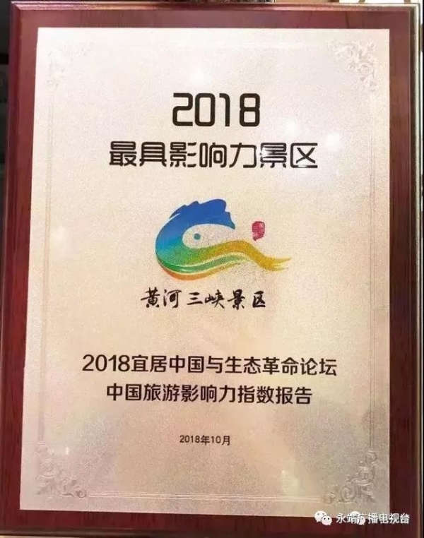 10月26日,在北京举行的2018宜居中国与生态革命论坛上,黄河三峡景区荣膺“2018最具影响力景区”。