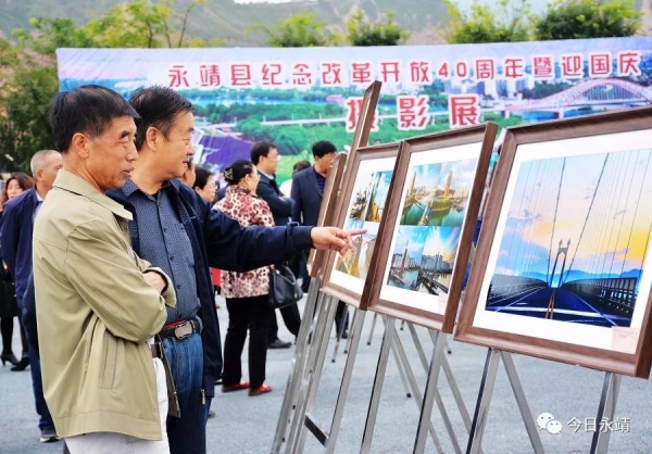为全面展现永靖县在改革开放和社会主义现代化建设中取得的成就,展示黄河三峡独特的自然风光、人文景观,推动黄河三峡旅游事业快速发展,9月26日,永靖县纪念改革开放40周年暨迎国庆摄影图片展在彩陶广场举行。