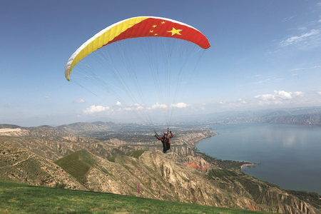 碧水蓝天,一“伞”当先,高空俯瞰,众山皆小。9月12日,为期3天的“圣境山杯”2018年全国滑翔伞定点联赛(甘肃永靖站)在刘家峡国际滑翔营地正式开赛,40多名来自国家滑翔伞定点集训队的队员和全国各地优秀滑翔伞运动员齐聚美丽的永靖县炳灵湖畔共同体验飞翔的乐趣。