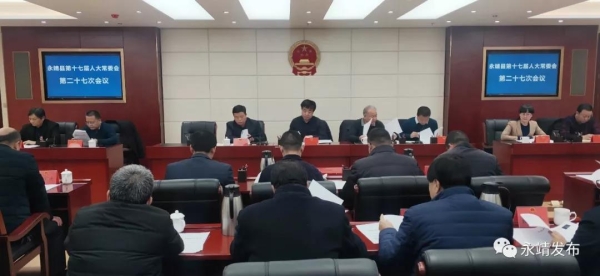 1月9日,永靖县十七届人大常委会举行第二十七次会议,县人大常委会主任孔祥友,副主任马万彪、崔云虎、孔得来及常委会组成人员参加会议。