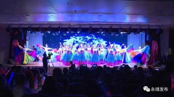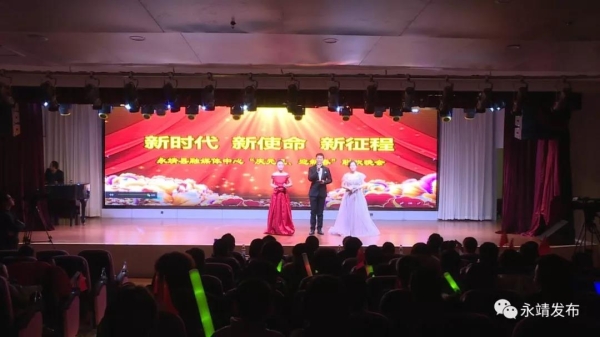 晚会在男女合唱《幸福中国一起走》中拉开帷幕。情景剧《小伟的媒体人生》、访谈节目《讲述媒体人的故事》艺术地再现了新闻工作者无悔付出、献身新闻事业的心路历程;诗朗诵《新闻的力量》和《你眼中的记者我的爸爸》用包含深情的语言,表达了新闻工作者胸怀梦想、执着追求的精神风貌和坚强决心。歌舞、相声、合唱、朗诵、器乐演奏等丰富多彩、形式多样的文艺节目,抒发了新闻工作者不忘初心,牢记使命,唱响主旋律,传播好声音,倾情奉献的时代风采。 12月27日,由永靖县教育局主办、永靖县青少年活动中心承办的“我和祖国共奋进”——永靖县教育系统2020新年音乐会在青少年活动中心举行。 音乐会上,师生表演了古筝齐奏《我和我的祖国》、四重唱《不忘初心》、合唱《少年中国梦》等精彩节目。音乐会紧扣主旋律、讴歌新时代,充分展示了永靖县教育人团结进取、迎难而上、喜迎新时代的精神风貌,展示了全县素质教育取得的丰硕成果。12月28日晚,永靖县妇幼保健院举行“庆元旦、迎新春”文艺晚会,舞蹈《嘴巴嘟嘟》、《太极剑》、《时装秀》等节目精彩纷呈,现场掌声不断。欢快的节奏、优美的歌声表达了新时代妇幼工作者认真履行职责使命,凝心聚力、积极进取的精神风貌。