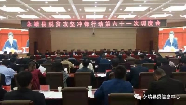 11月3日下午,永靖县召开脱贫攻坚领导小组会议暨脱贫攻坚冲锋行动第六十一次调度会,传达学习州脱贫攻坚领导小组会议2019年第十一次会议暨东西部扶贫协作工作专题会议精神,全面安排部署近期脱贫攻坚重点工作。州政协副主席、县委书记尹宝山主持会议并讲话,县委副书记、县长张自贤讲话,县领导孔祥友、柳玉珍等全体在家县级领导出席会议。