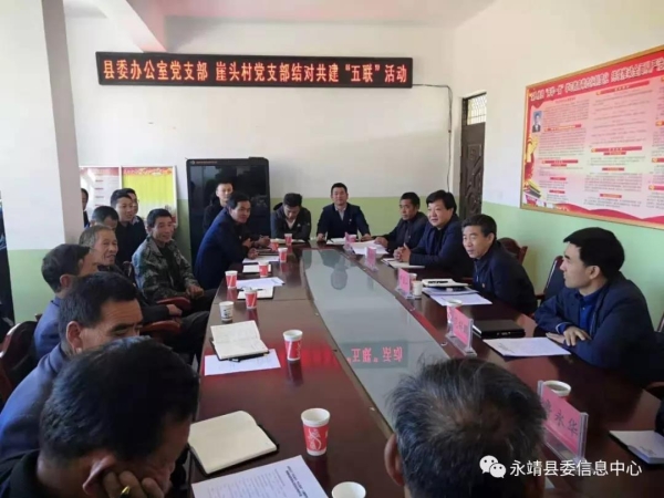 10月12日上午,县委办公室党支部在联系帮扶的新寺乡崖头村开展“不忘初心、牢记使命”主题教育结对共建“五联”活动。州政协副主席、县委书记尹宝山参加并讲党课。