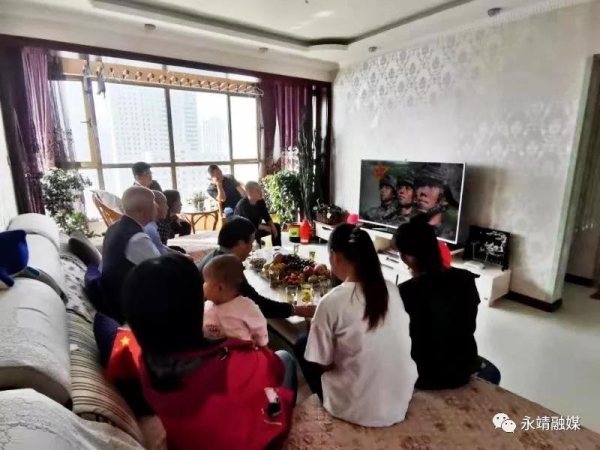 在县政府10楼会议室,桌子上摆满了国旗,洋溢着热烈喜庆的气氛。县领导张自贤、马国全、贺敬党、刘尚增、王富小子、石克政及有关部门负责人共同收看了庆祝大会直播。当嘹亮的国歌声响起时,全体人员起立,共同见证这一伟大时刻的到来。大家怀着激动的心情,聆听了习近平总书记重要讲话,认真观看了阅兵式。大气磅礴、威武雄壮的场景,令人鼓舞,倍感振奋,大家都为祖国的强大而感到无比的自豪和骄傲。 在县公安局,80余名民警集中观看了直播实况。民警们纷纷表示,观看庆祝大会使精神和灵魂上都受到了一次神圣的洗礼,是一次铭记于心的爱国主义教育,激发了强烈的爱国情怀和工作斗志。作为人民警察他们将以更加饱满的工作热情投入到公安工作中,为维护社会治安稳定,保护人民群众生命财产安全做出应有的贡献。 永靖县公安局刑侦大队指导员王之栋:“作为一名人民警察,我对观看国庆阅兵仪式非常期待。今天,我们县公安局组织没有工作任务的民警集中观看国庆阅兵仪式我倍感振奋,同时为正在办案和巡逻的战士们道一声辛苦了。” 永靖县公安局指挥中心科员赵清秀:“通过观看这次的大阅兵 ,我内心十分的激动,真真实实的感受到了祖国的强大,祝福美丽的祖国更加强大,人民更加幸福。” 永靖县公安局治安大队大队长李金仓:“今天是新中国成立70周年的庆祝大会,阵容宏大。我观看后感受到祖国带给我们的安稳生活,体会到人民军队的威严,我为我们伟大的祖国感到自豪。作为一名人民警察,我将坚守岗位、守护平安,为永靖的发展贡献一份力量,向祖国母亲敬礼。” 国网甘肃刘家峡水电厂组织全厂党员职工集体收看直播盛况,共同唱响中华人民共和国国歌,共同庆祝这一激动人心的时刻,共同祝福祖国越来越强。 国网甘肃刘家峡水电厂厂长李永清:“为我们的祖国取得这样辉煌的成绩感到骄傲,在我们今后的工作中,我们严谨细致、认真负责,高标准、严要求、高质量把我们的企业发展好。” 国网甘肃刘家峡水电厂职工祁妍:“作为一个中国人我感到非常的自豪,为我们的祖国感到由衷自豪,同时作为一名党员我们要按照习近平总书记的讲话,不忘初心、牢记使命,做好我们的本职工作。在我们的本职岗位上爱岗敬业、扎实工作,为实现中华民族伟大复兴做出应有的贡献。” 国网甘肃刘家峡水电厂职工李楠:“正值祖国生日之际,我想对祖国说,生日快乐,我爱你中国。” 清晨的刘家峡水库,晴空万里,碧波浩渺。码头上,游艇上,红旗飘飘,国庆氛围浓厚。当天,县消防大队为确保国庆期间水库交通安全,在水库开展了应急安全执勤。在做好消防安全应急工作同时,全体20名消防员还通过码头大屏幕观看了国庆70周年阅兵式。 永靖县消防大队消防员司成敏:“在以后的工作中,我要认真做好本职工作,为全县消防消防救援做出自己应有的贡献。” 永靖县消防大队消防员刘虎:“在国庆节期间,我们坚决确保水上救援任务万无一失。” 太极镇各村群众带着无比喜悦和自豪之情,集体观看阅兵式。雄壮嘹亮的国歌声、英姿飒爽的中国军人、位列世界前列的武器装备,让观看群众激动不已。祖国强则我强,祖国富则我富,太极镇群众表达了对祖国的无限赞美之情,祝福祖国繁荣昌盛。 太极镇上古村文书尤旭明:“我们观看了阅兵仪式,共同庆祝新中国成立70周年,内心非常的激动,在这里祝福祖国母亲节日快乐。看着我们国家的军队这样强大了,武器这样先进了,作为老百姓我感到心里非常踏实,感到无比自豪和骄傲。只有祖国站起来了,富起来了,强大起来了,我们老百姓才有幸福感、获得感、安全感。” 杨塔乡松树湾村地头干活的群众也在手机上观看国庆阅兵直播。 退伍老兵王兴刚一大早就换上军装,戴好奖章,和老伴、邻居们手拿着五星红旗,一起守候在电视机旁,等待观看阅兵式的直播。直播正式开始后,大家目不转睛地注视着电视画面,当雄壮的国歌声响起时,老兵王兴刚情不自禁的行起了军礼。王兴刚1981年参军入伍,是对越自卫反击战战士。1986年随部队到云南老山前线,在某高地执行任务时不顾危险,闯入雷区抢救战友,荣立一等功。看着分列式上新式飞机、坦克、大炮、火箭和威武雄壮的军队,王兴刚激动万分,倍感自豪。边看边回忆自己在老山战役中的战斗情景。 退伍老兵王兴刚:“通过今天的阅兵式,我们国家发生了翻天覆地的变化,我作为一个老兵,感到非常的自豪,非常的高兴。国家的强大是我们老百姓最大的福气。” 王兴刚一边翻看着过去的老照片,一边高兴的给大家介绍刚刚获颁的中华人民共和国成立70周年纪念章。 退伍老兵王兴刚: “我心情非常的激动,仿佛感觉到了当年勇立一等奖的那种心情,感谢党,感谢政府没有忘记我这个老兵。” 一段岁月,波澜壮阔;一种精神,辉映当下。王兴刚说,今天的盛世来之不易,我们一定要铭记先辈们的牺牲,铭记和平生活的来之不易。作为一名老兵,他希望世界永远和平,也坚信在习近平总书记的带领下,伟大祖国一定会早日实现中国梦。 退役军人王兴刚:“回想当年,我的好多战友都牺牲了,还有好多战友负伤,看到今天的盛世是非常来之不易的的,是好多前辈们用鲜血换来的,所以我希望国家以后富强、和平、盛世长存。” 在县城市民姚天弟家,门口悬挂着“光荣之家”光荣牌,一面崭新的国旗显得格
