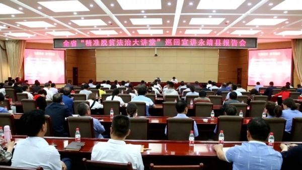 近日,全省精准脱贫法治大讲堂巡回宣讲永靖县报告会举行。州现代农业示范区管委会、州司法局、各乡镇、县直及驻永有关单位负责人,136个行政村帮扶工作队队长,县司法局全体干部职工聆听了报告。