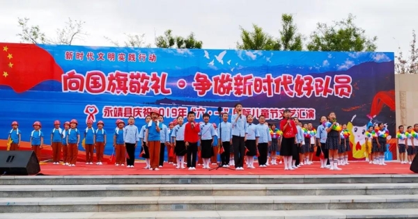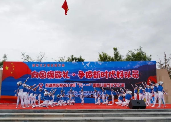 5月30日上午,由中共永靖县委宣传部主办,共青团永靖县委、永靖县教育局承办的《新时代文明实践行动“向国旗敬礼·争做新时代好队员”——永靖县庆祝2019年“六·一”国际儿童节文艺汇演》在古城新区彩陶广场圆满举行。