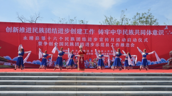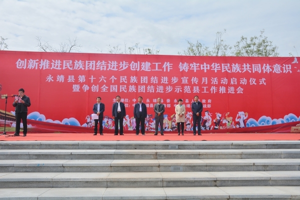 5月14日,永靖县争创全国民族团结进步示范县推进会暨第十六个民族团结进步宣传月活动启动仪式在彩陶广场举行。县委常委、统战部部长张国良讲话并宣布宣传月活动启动。