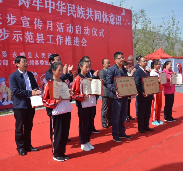 此次活动旨在深入学习贯彻落实习近平新时代中国特色社会主义思想和党的十九大精神,坚持“深化民族团结进步教育,铸牢中华民族共同体意识”工作主题,进一步创新载体、延展深化,引导各族群众团结一心、奋勇向前、共同努力,为全力争创全国民族团结进步示范县,决胜决赢脱贫攻坚战,年内实现整县脱贫摘帽而努力奋斗。 仪式上对获得全省民族团结进步创建示范单位、示范镇进行了授牌;为临夏州首届“石榴杯”民族团结好故事有奖征文获奖者颁奖;盐锅峡镇、刘家峡镇主要负责人作了交流发言。 活动现场,我县相关单位通过悬挂横幅、展板展示、发放宣传资料等方式,对民族团结进步相关主题进行了宣传,黄河三峡艺术团表演了精彩的文艺节目。 州民委相关负责人莅临指导,县委、县人大、县政府、县政协分管领导,县直各单位负责人,统战部全体干部,周边群众及宗教界人士代表参加启动仪式。(记者:李树鹏 郭红)