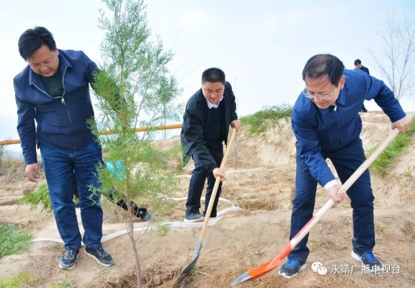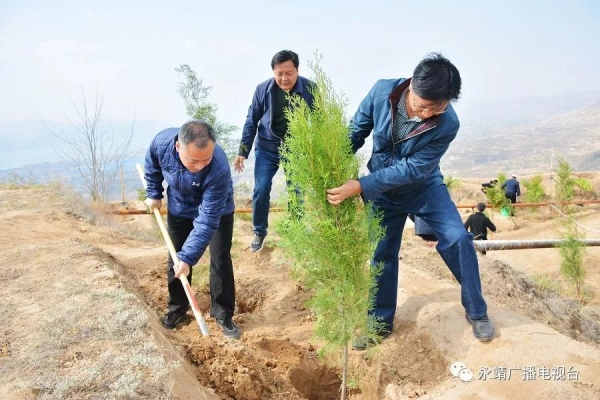 春暖花开季,植树正当时。4月15日,永靖县开展春季义务植树活动,动员全县干部群众投入到生态环境建设中,共同为建设宜居宜游和谐美丽新永靖植树添绿。州委常委、组织部部长黄宝树,州委常委、副州长李茂,副州长王方太,州政协副主席、县委书记尹宝山,县人大常委会主任孔祥友,县政协主席柳玉珍等州县领导在县城南山林场参加了义务植树活动。