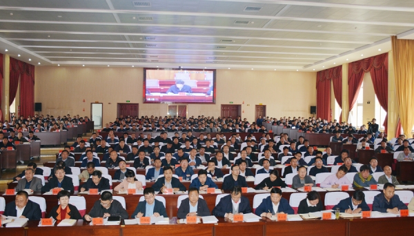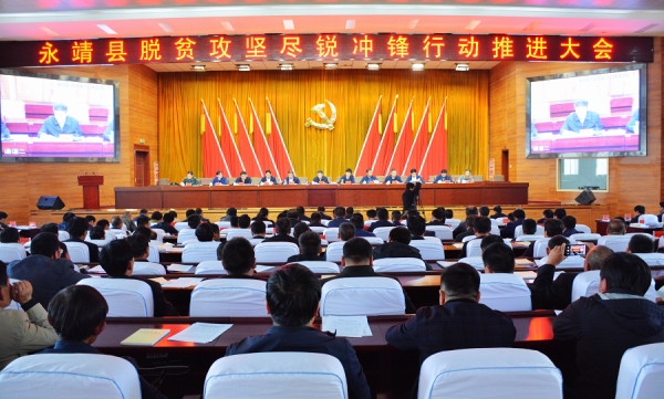 4月12日,永靖县召开脱贫攻坚尽锐冲锋行动推进大会。州政协副主席、县委书记尹宝山主持会议并讲话。县人大常委会在主任孔祥友,县委副书记、县长张自贤,县政协主席柳玉珍,全体县级干部及县乡村三级干部400多人参加会议。