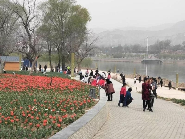 正值小长假,黄河花堤的郁金香也争相开放,争奇斗艳,吸引了不少游客。 游客王雅琼说:“我是从兰州过来的,像郁金香这个公园都特别的好看,看着绿绿的,而且跟这种枣树配上,觉得这种风景是特别的独一无二。”