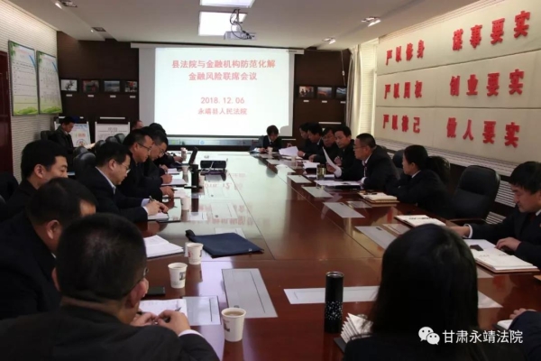 12月6日,永靖县人民法院与永靖县银行业各金融机构召开防范化解金融风险联席会议,对金融机构涉及诉讼、执行工作进行了深入交流。县法院党组书记、院长妙应征,全县8家金融机构代表参加会议。