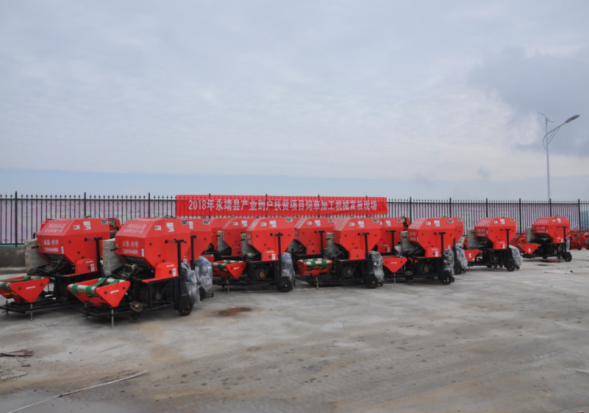 永靖县统筹2018年产业到户扶贫项目饲草加工机械资金、2018年粮改饲项目资金和农机补贴资金,购置铡草机械159套,包膜2480捆,包裹袋72500套,调制剂3918公斤,发放到盐锅峡、刘家峡、太极、三条岘、三塬、杨塔、王台、小岭、红泉、川城、新寺、坪沟12个乡镇的84个村,由农民专业合作社统一管理,为周边农户提供玉米秸秆加工服务。目前,累计发放铡草机械80余套,包裹袋43000套,包膜1080捆,调制剂2040公斤,各项工作正在有序推进。