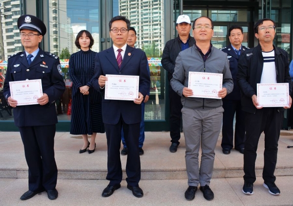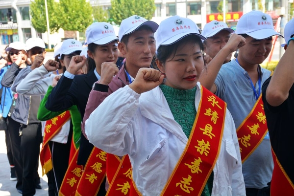 仪式上,县禁毒办向被评为全国“6.27”工程优秀教师、校外辅导员的4名同志颁发了荣誉证书,向禁毒志愿者颁发了志愿者聘书,并集体进行了宣誓。
