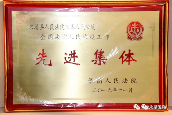 近日,永靖县人民法院三塬人民法庭获2019年度全国法院人民法庭工作先进集体,成为全国100家先进集体之一;司法警察大队一级警司董仓荣同志荣获2020年度甘肃省人力资源和社会保障厅、甘肃省高级人民法院先进个人。