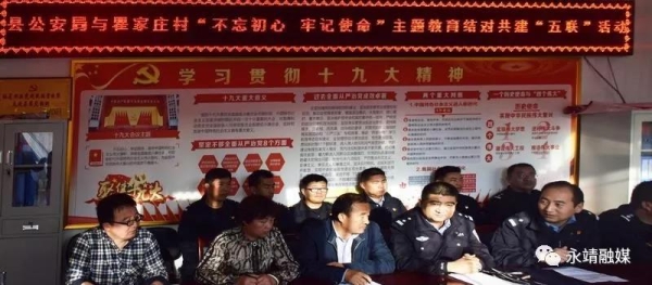 10月16日,永靖县公安局与陈井镇瞿家庄村党支部在瞿家庄村开展了“不忘初心、牢记使命”主题教育结对共建“五联”活动。