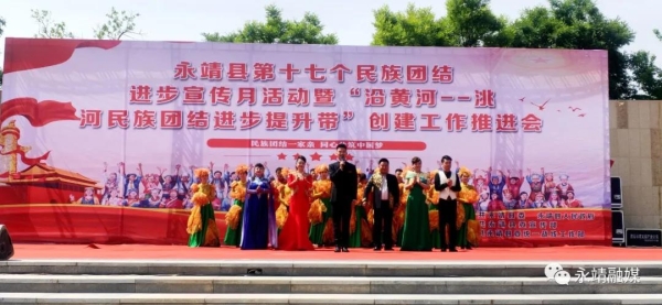 5月18日,永靖县第十七个民族团结进步宣传月活动启动仪式暨“沿黄河--洮河民族团结提升带”永靖县创建工作推进会在古城新区彩陶广场举行。