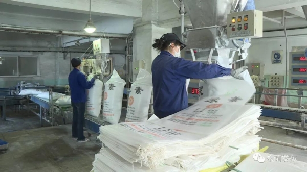 3月5日,记者来到我县化肥生产企业甘肃刘化(集团)有限责任公司,在尿素生产车间我们看到,刚刚生产出来的尿素正在从传送带上输送到包装车间,包装车间里的工人装袋、封口,有条不紊地进行着一道道工序。