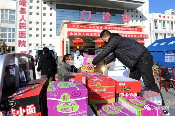 2月3日,中国铁塔股份有限公司临夏分公司永靖公司奉献爱心,购买了方便面,矿泉水等物资,送到县医院、公安交警大队等一线抗疫单位,助力永靖打赢疫情防控阻击战,展示了国有企业在突发公共卫生事件面前表现出的责任与担当。