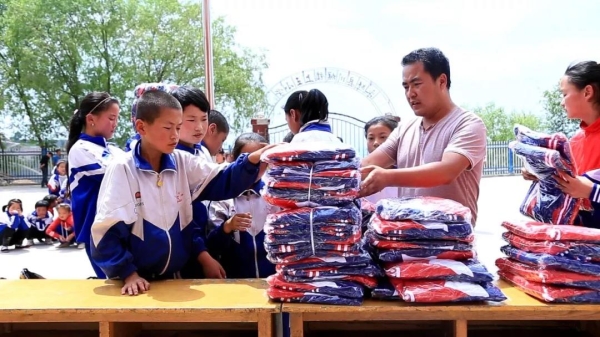 活动中,永靖县关工委办公室工作人员为同学们讲解了思想政治理论有关知识,甘肃宇龙劳务有限责任公司为孩子们现场发放了价值1万多元的198套爱心校服。(文图: