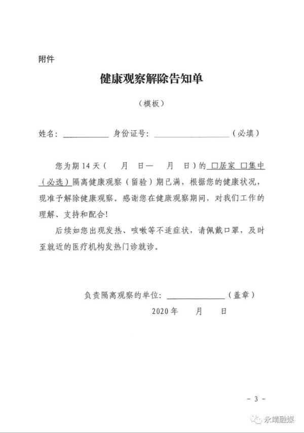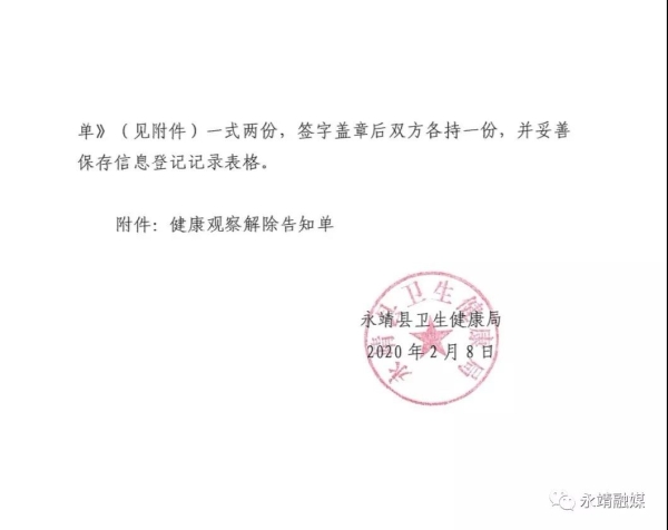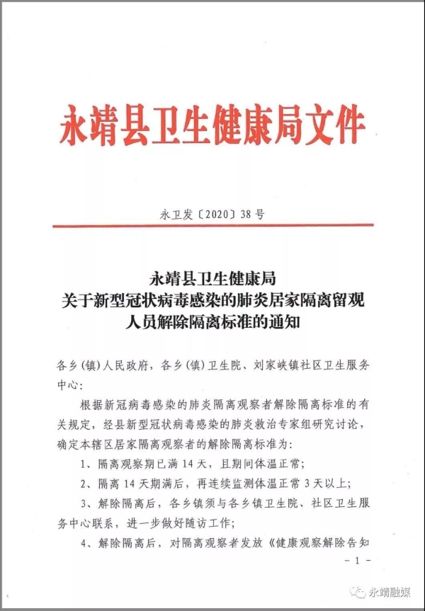 关于新型冠状病毒感染的肺炎居家隔离留观人员解除隔离标准的通知