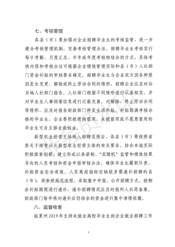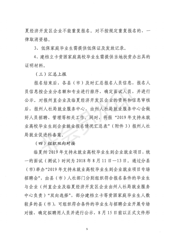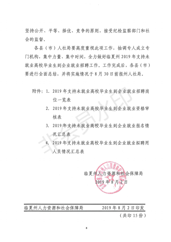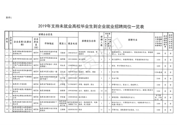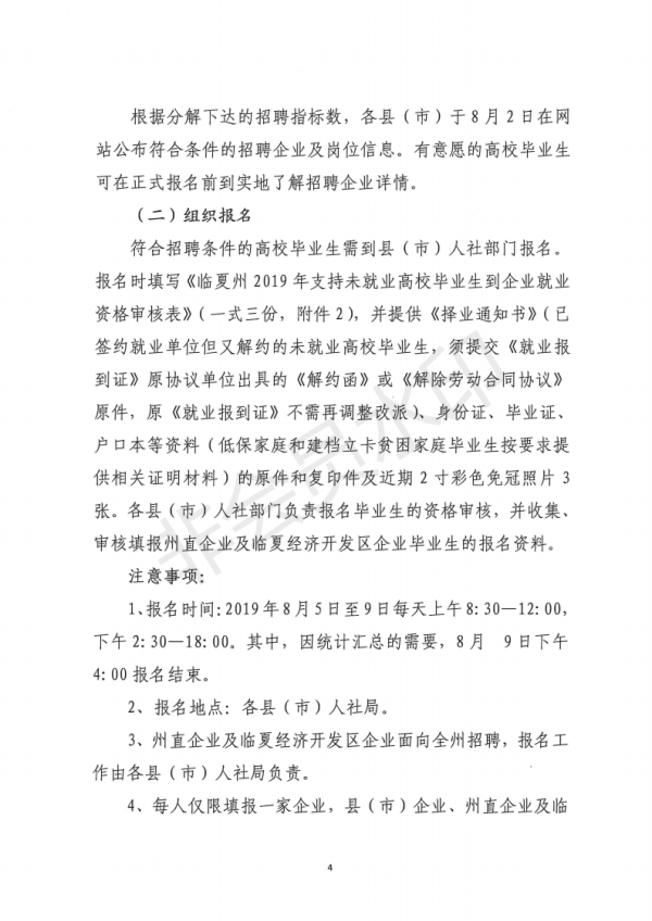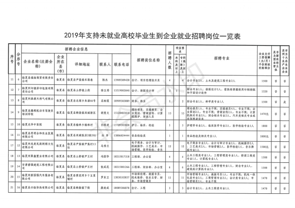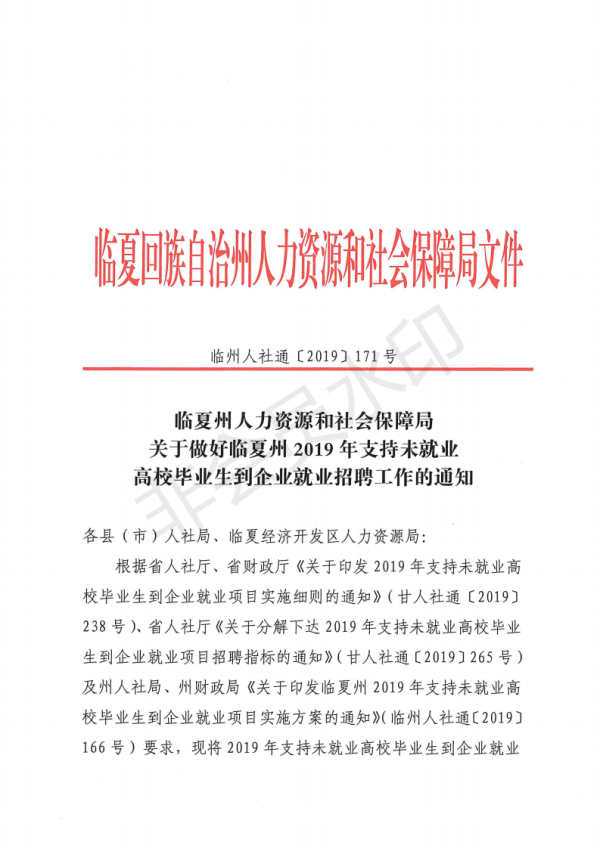 【通知】关于做好临夏州2019年支持未就业高校毕业生到企业就业招聘工作的通知