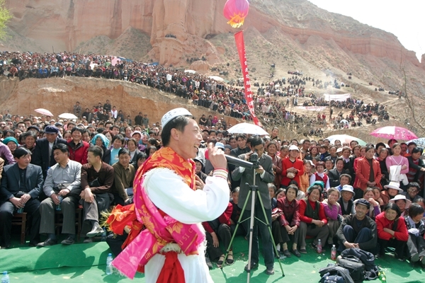 “花儿”被北乡人称为“山歌”、“野曲”。相对于宴席曲这样的“家曲”而言,它是不能在村子里唱的。河州北乡人禁忌在庭院、村庄及有“避辈”处唱“花儿”,这就形成了许多“花儿”山场,又叫“会场”。永靖的“花儿”山场有十多处,流传至今规模较大的“花儿”山场有炳灵寺、罗家洞、白塔寺、岗沟寺四处。其中炳灵寺和罗家洞“花儿”会久负盛名。